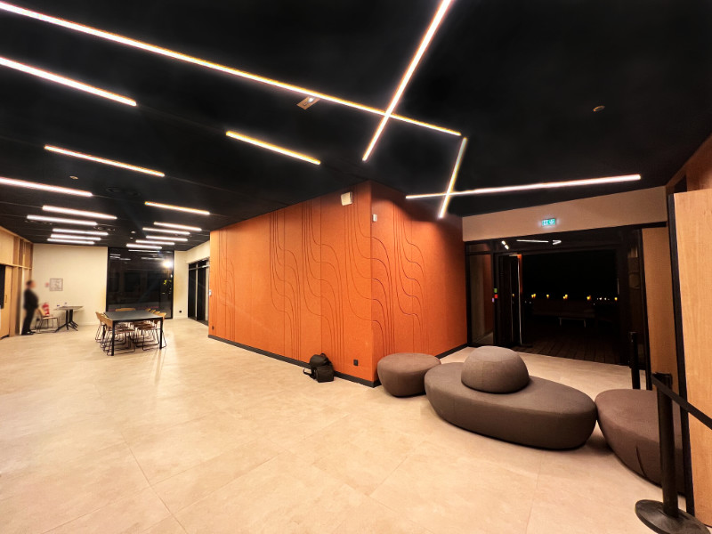 - Lignes de lumière intégrées dans des plafonds modulaires