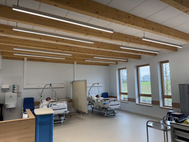 Pour cette salle de travaux pratiques, l'installation de l'ACTiLine4373 garantit des conditions de travail optimales. Grâce à son optique asymétrique 20° et son diffuseur anti-éblouissement, le flux lumineux est dirigé précisément sur les paillasses sans fatiguer le regard.