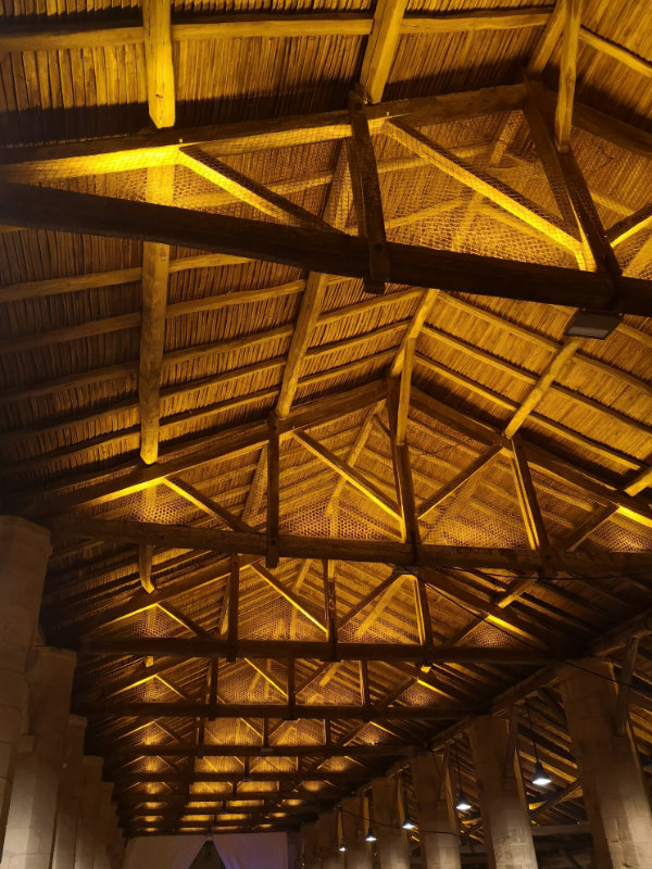 Le filtre couleur ambre intégré dans les tubulaires à LED ainsi que la température de couleur choisie apportent une ambiance lumière naturelle et chaleureuse. L'éclairage ambré vient souligner les lignes et textures de la charpente et vivifier le côté "ancien" du bâtiment.